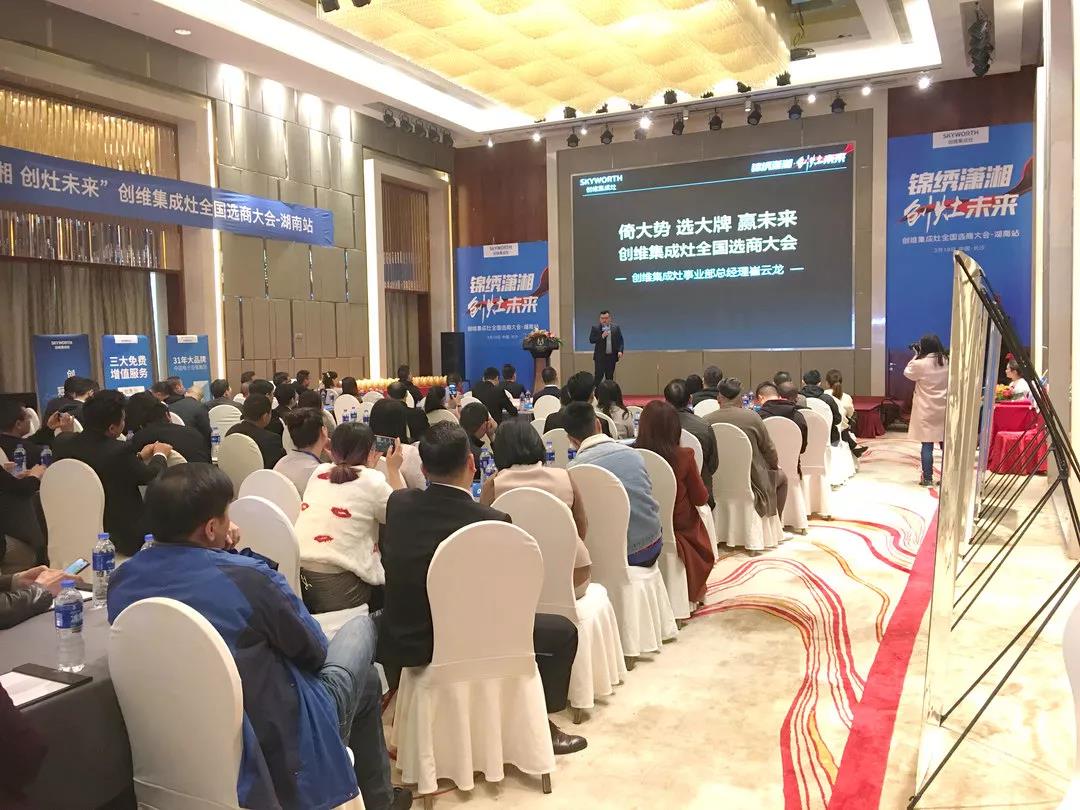 ?2019年3月19日,創維集成灶全國選商大會(湖南站)在長沙融程花園酒店隆重舉行,深圳創維智能廚電有限公司總經理何順剛、創維廚電集成灶事業部總經理崔云龍,以及逾百家湖南各地知名建材家居經銷商出席了本次大會,一起見證了這場創維集成灶進軍湖南市場的盛況。