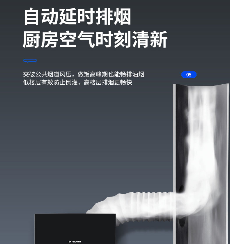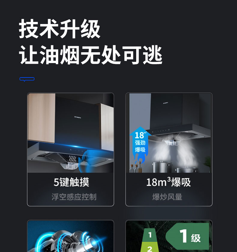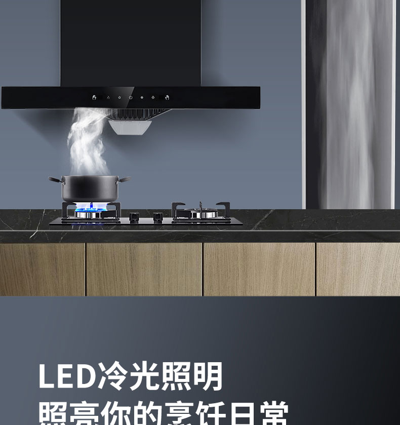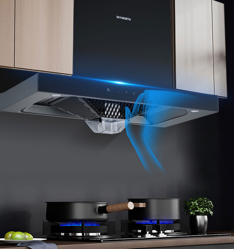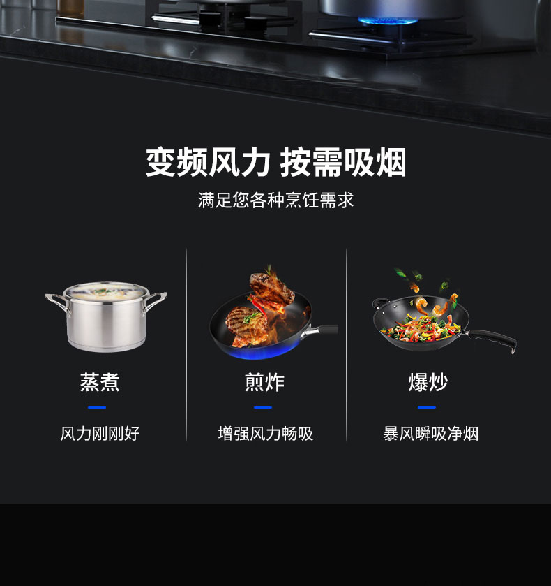 穹頂瞬吸,深腔攏煙油煙不擴散;一體成型免拆洗油煙腔